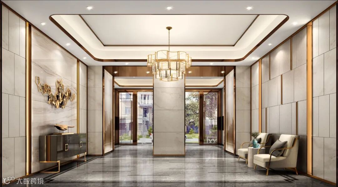 双精装入户大堂:以近300则标准设计入户、车库双精装大堂,约6米深挑空。