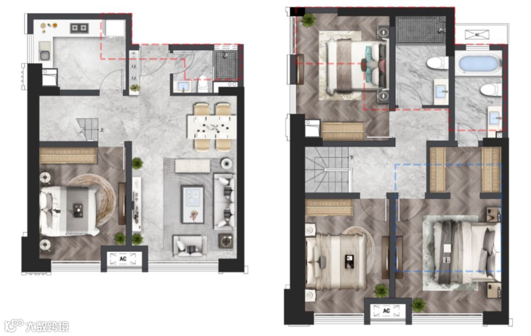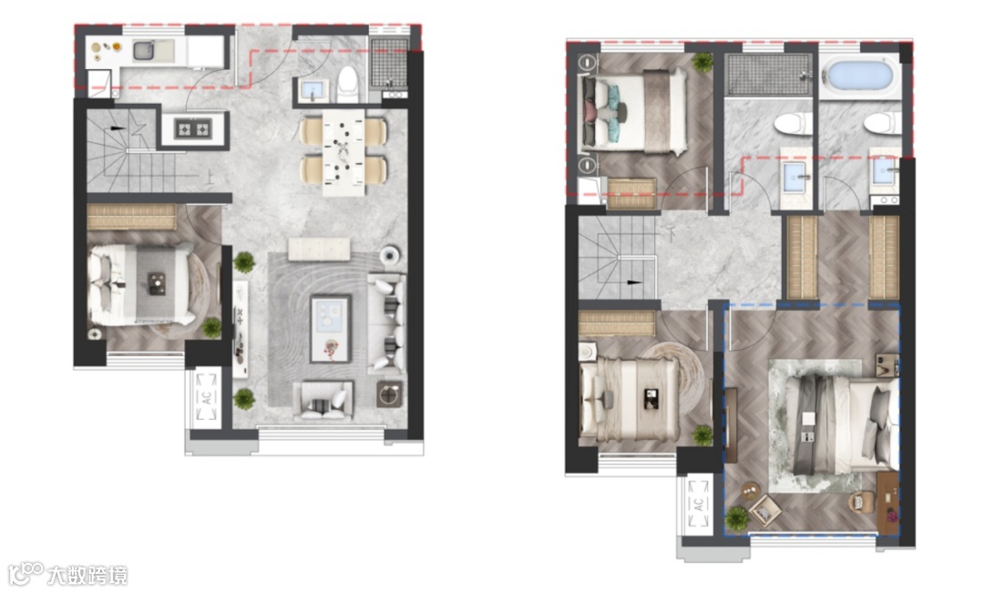 项目注重横向面宽、全屋整体采光面及人居生活秩序感的变化,匠造区域难得宽境复式:约5.1m大横厅,足以装下聚会待客的欢声笑语;约23㎡套房式主卧,体现主人尊贵。