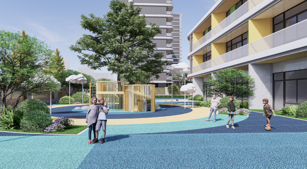 · 全架空层设计下,自主学习空间、社区图书角、主题乐园、儿童植物博物馆、周末共享集市等功能空间,被有序分配在不同楼栋的架空层内;