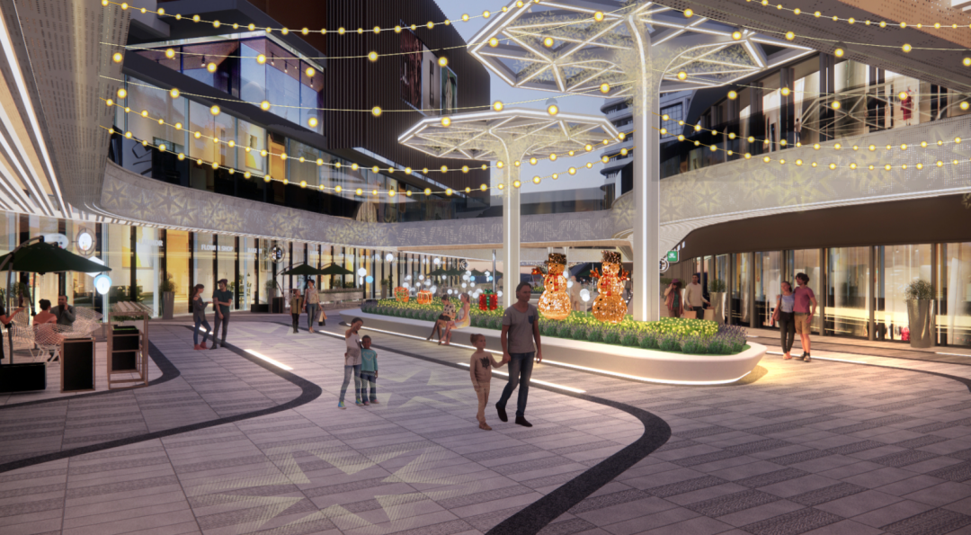 TOD交通枢纽引导人流聚集,地面交通体系与地下交通体系共同作用分散、引流人群,将社区的互交性进一步延伸至社区外,形成社区内外循环的立体交通体系。实现地下、地面、空中的室内外公共空间的一体化衔接。