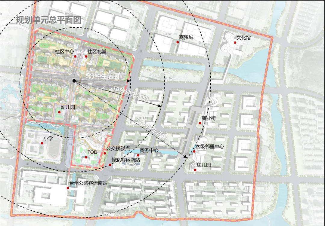 5分钟生活圈:社区中心、党建中心、社区礼堂、幼儿园、室外健身点等。
