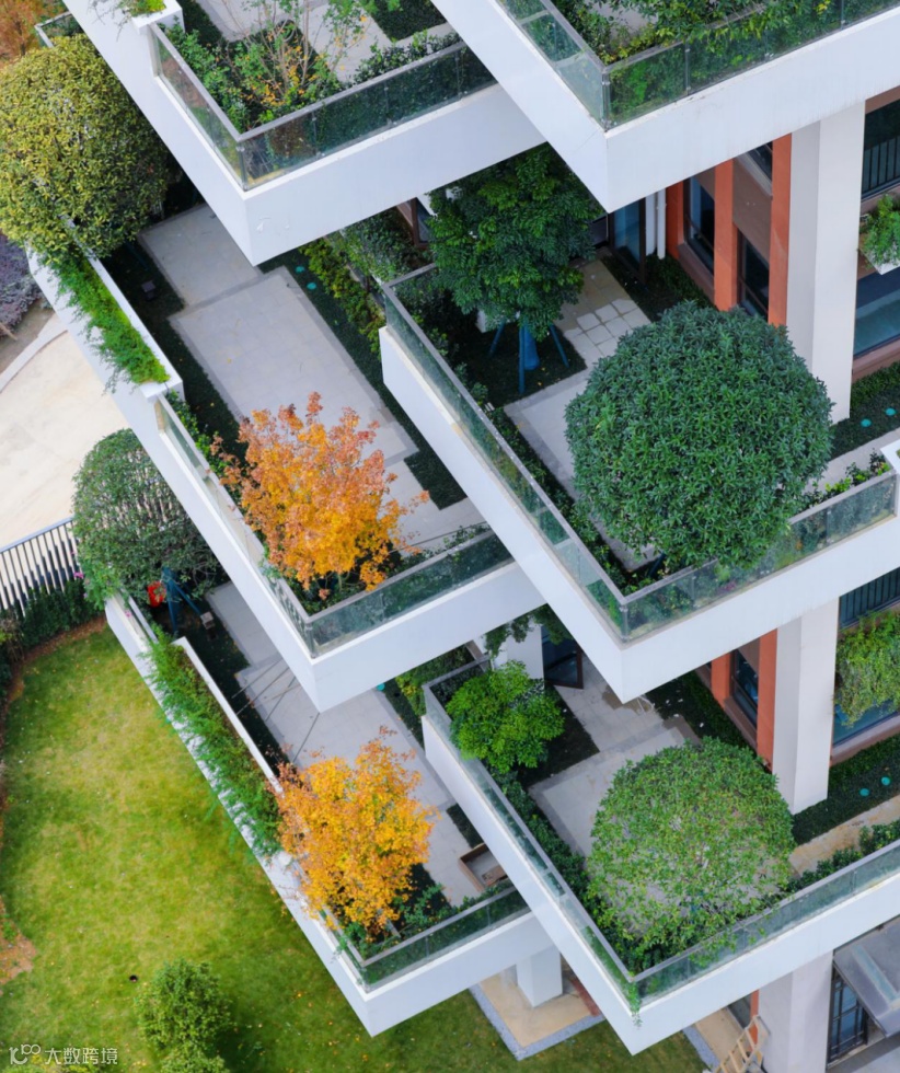 露台种植这类建筑需要配建一个独立的浇灌系统来做水源的保障,普通建筑层高都在2.7-3米,做了挑空设计会达到6-9米,当树木慢慢长大,预留的生长空间是否能满足植被成长需求?而且需要按时对其修剪,不然枝叶的生展会影响采光,根系的生长会可能存在安全隐患。