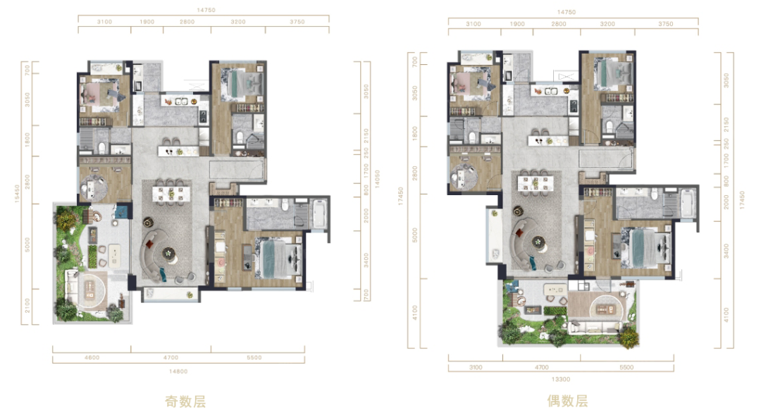 成都万科·江上云洲通过创新270°转角错层露台设计,与巨幕取景飘窗效果叠加,新作建面约138-168㎡花园大平层,以精准独特的设计语汇来表达空间语言,造一个如画的空间体验。