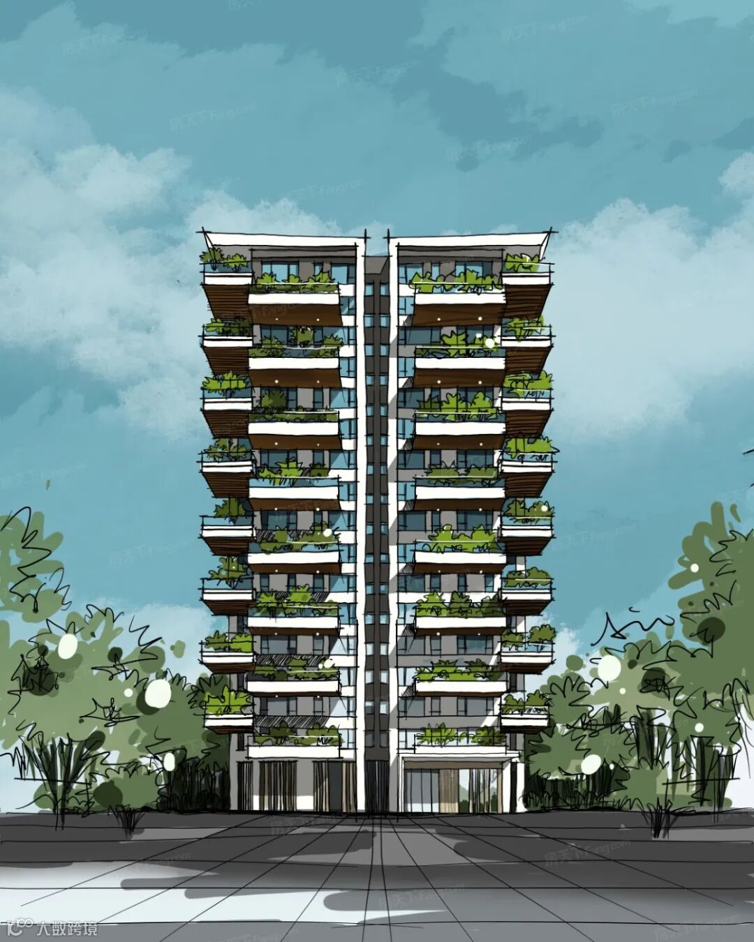 打破传统住宅的桎梏,引入垂直森林的设计理念,将社区与自然有机结合,形成一条柔和的绿色天际线,为环境提供更多的生态可能性,并为城市的可持续发展带来积极的影响。