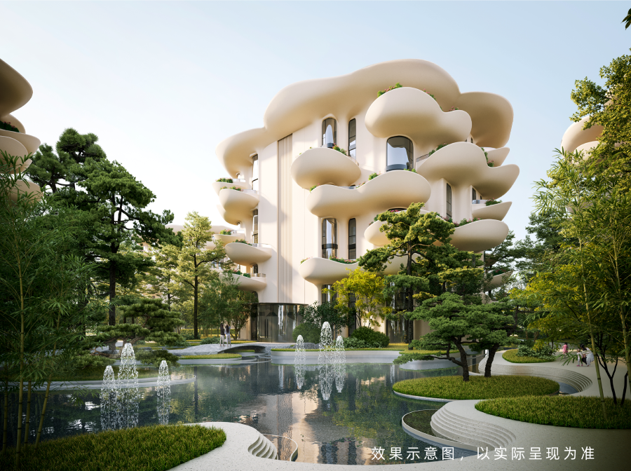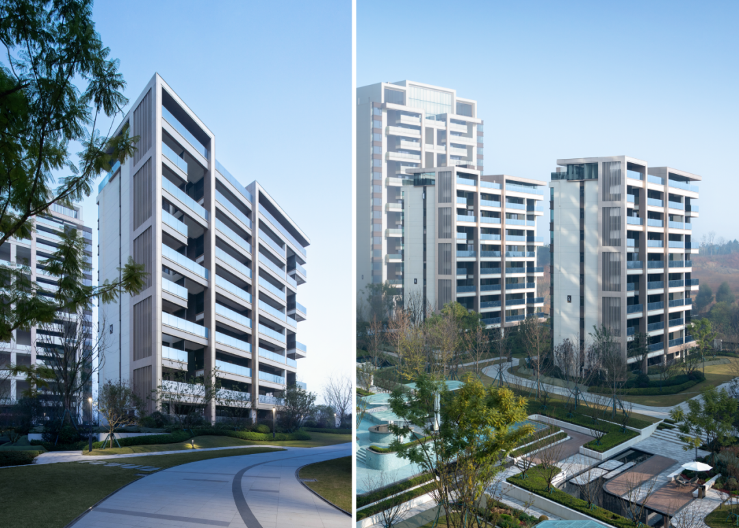 成都黄龙溪谷清峯岸实现“空中庭院”的特色——让高层与庭院共生,使森林城市延续至第五立面。
