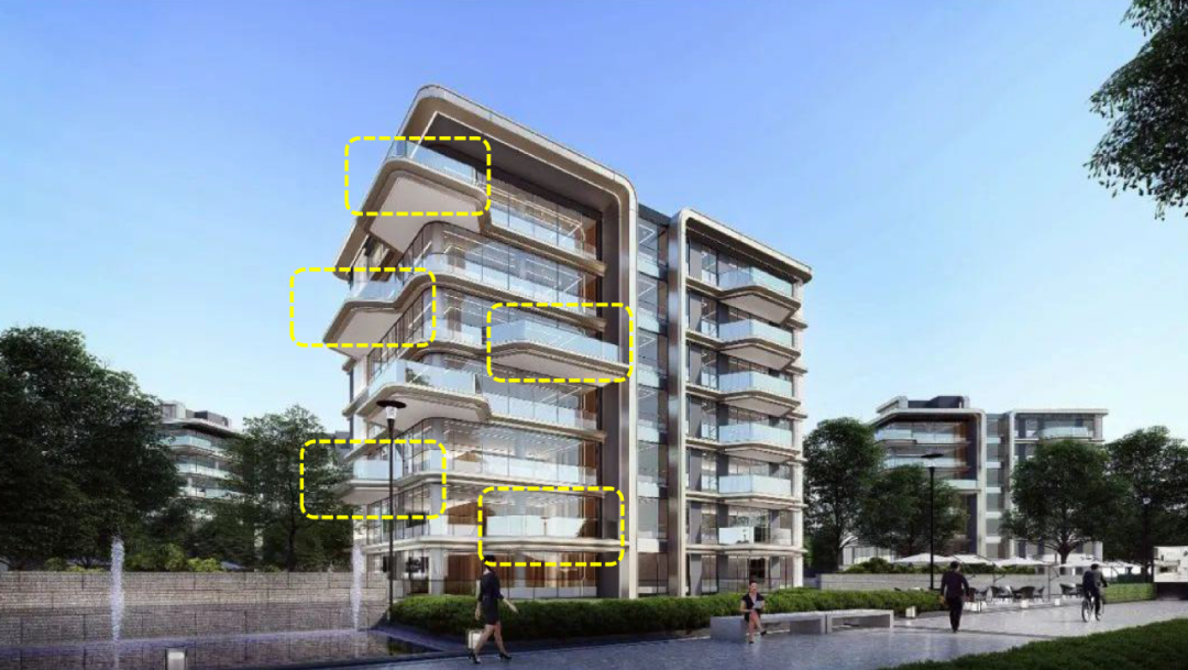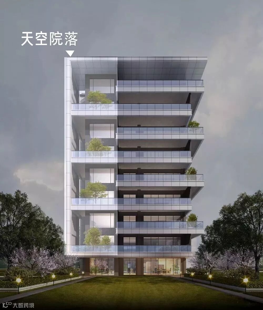 产品设计上采用露台外伸、奇偶层错位的布局,每一层都形成了“空中庭院”的概念,彻底打破了“底层才有庭院,顶层方得露台”的传统建筑模式,使每户均可坐拥约5.8m高的挑高露台空间。