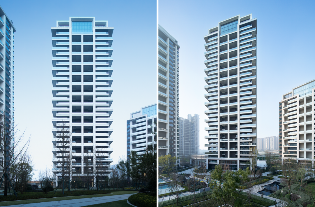 颠覆性的立面语言和曲线亲和力的建筑表情,加强了整体立面层次,以建筑体现流动的生命力、用自然诠释时代人居不同的美感。