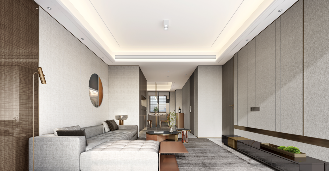 遵循了“大面宽”配合“短进深”的理念,以雍容的尺度扩展户型的采光面,增强南北对流,让每个房间的尺度、观景角度、通风采光效果皆为优越,奢尚的生活质感自然也就悄然浮现。