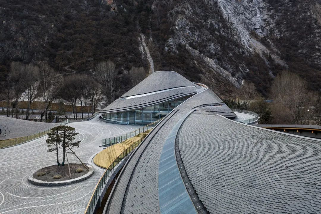 由于工程处于九寨沟世界自然遗产地、国家风景名胜区范围内。设计立意与九寨沟自然山水形态呼应,建筑内外充分体现藏文化内涵,造型舒展流畅,融合传统文化与现代风格,是富有深厚文化底蕴、