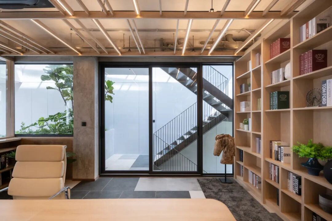 二层和三层漂浮的挤压种植成为工作场所郁郁葱葱的绿色避风港,有助于缓解精神疲劳,提高生产力。此外,这个双层空间在家庭办公室的私人空间和邻近单位之间提供了一个缓冲区。