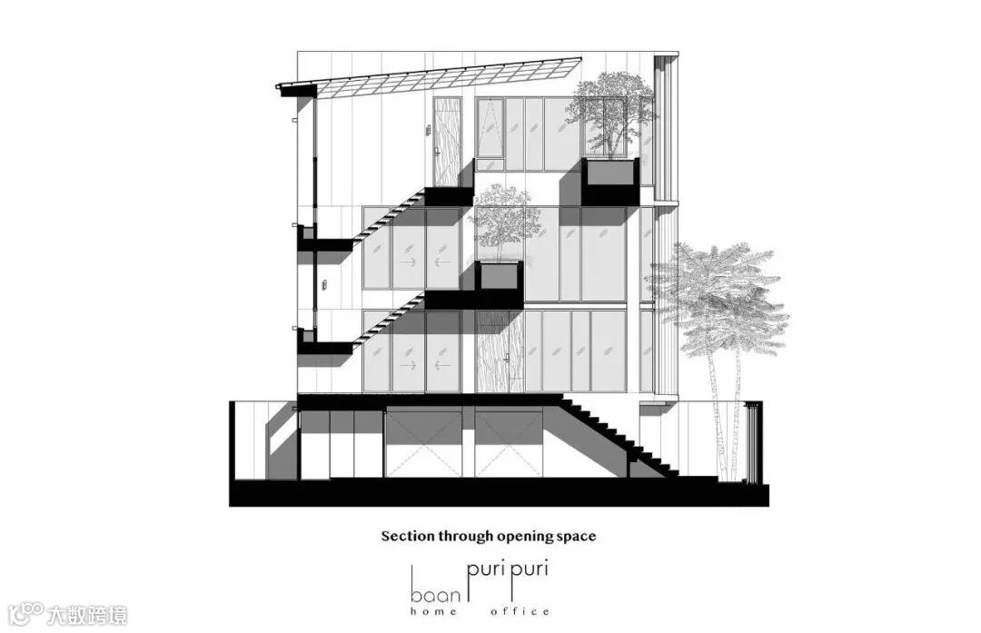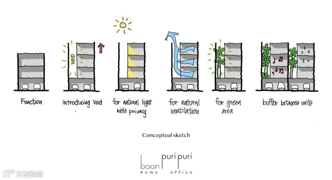 Baanpuripuri的新三层家庭办公项目位于曼谷一个密集的居民区,通过创造一个商业和住宅的垂直组合,改善所有用户的生活质量,重塑了典型的城市联排住宅。几项研究发现,增加工作场所的自然光水平可以提高办公室员工的注意力和工作效率。因此,该项目优先使用自然光线和绿色空间,以促进生活条件和改善工作方式。