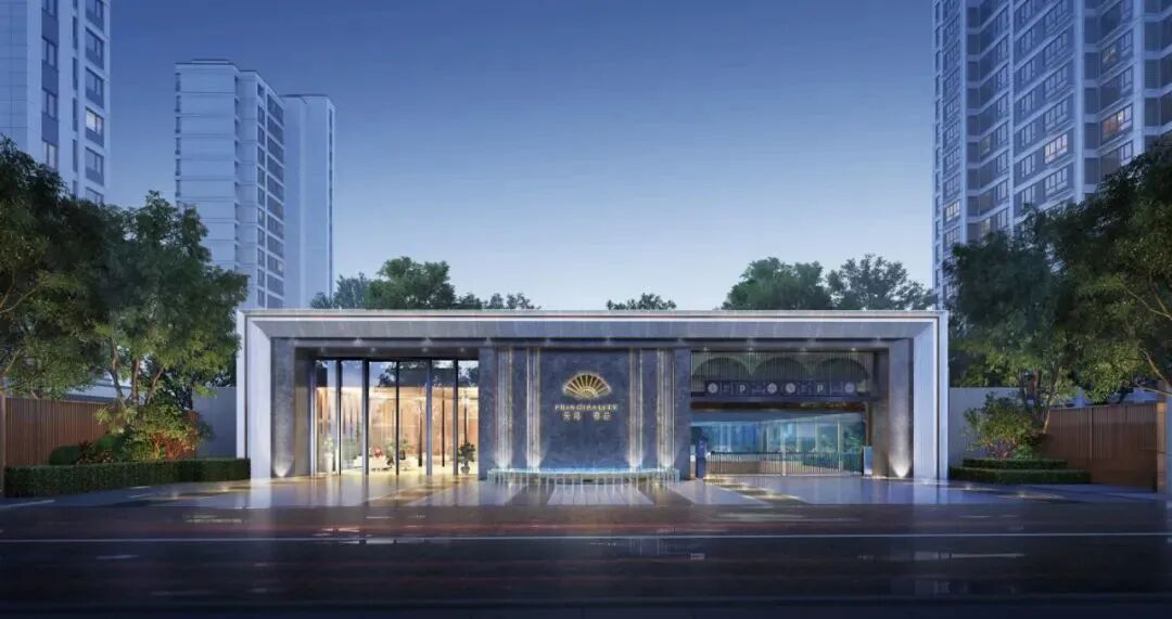 入园大堂是整个项目的点睛之笔。三益以国际化的高品质生活情境为出发点,在园林中轴线之上,设置入园迎宾大堂,在城市界面通过细腻的落客尺度和典雅建筑形象,营造出酒店化的到达与归家体验。同时在每栋楼也拥有挑高约4.2米的地上精装电梯大堂,为步行归家的业主或访客提供高品质生活体验。