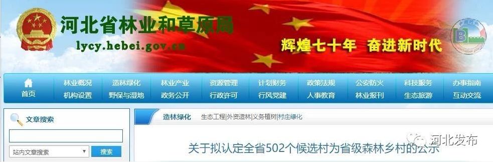 近日,河北省绿化委员会办公室发布《关于拟认定全省502个候选村为省级森林乡村的公示》,经各地逐级推荐,河北省创建认定工作领导小组审核研究,拟认定502个候选村为河北省森林乡村,公示期为2019年10月14日至10月18日。