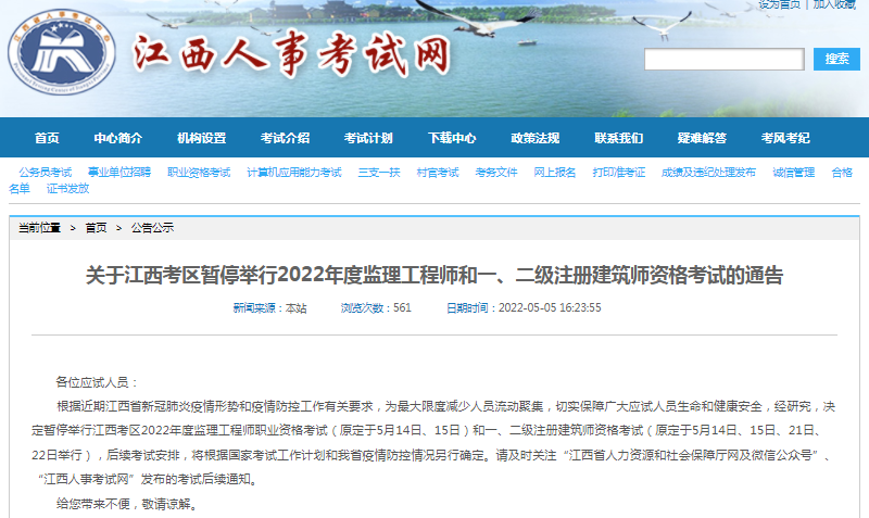 暂停考试公告地址:http://www.jxpta.com/news/14_3448.html