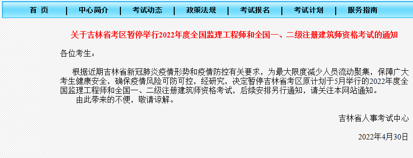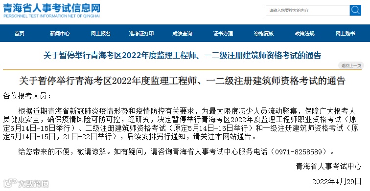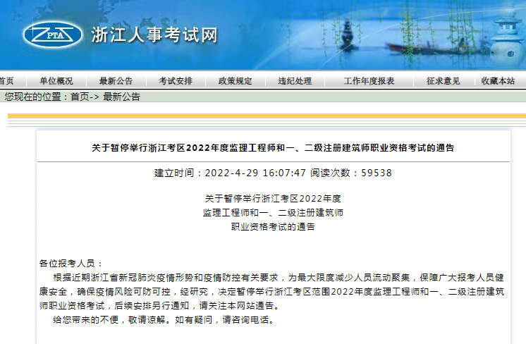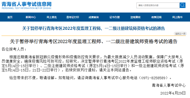 暂停考试公告地址:http://zfcxjst.hebei.gov.cn/zhengcewenjian/tongbaogongshi/202204/t20220429_316192.html