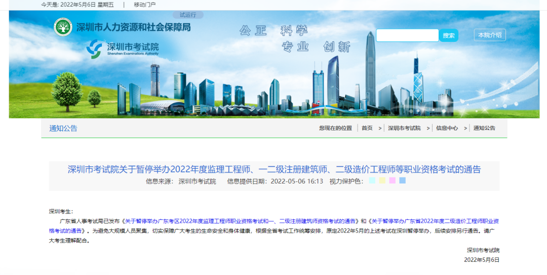 暂停考试公告地址:http://hrss.sz.gov.cn/szksy/zwgk/tzgg/content/post_9761444.html