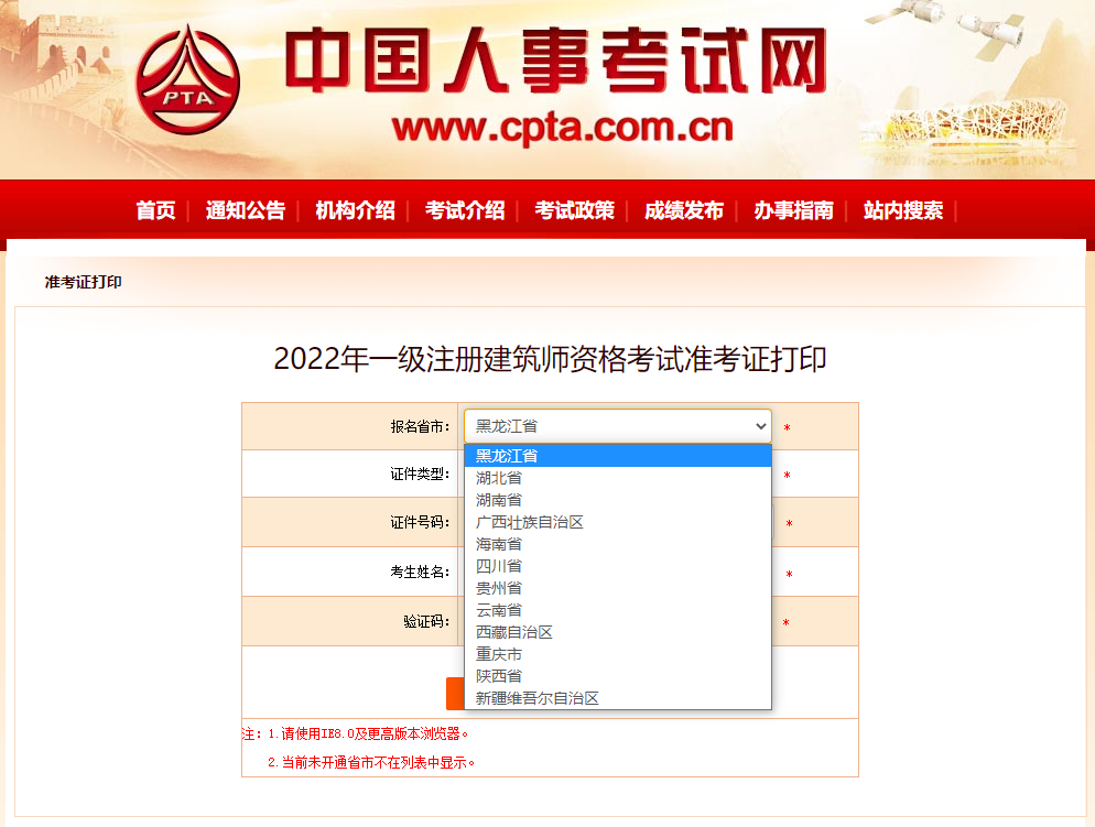 3、准考证打印通道抬头已出(暂不能打)的省市地区(5个):