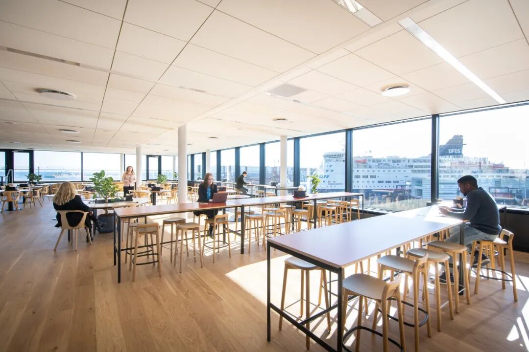 Common areas and office spaces are all carefully located to get the most out of the unique surroundings. Through large soundproof windows, employees and visitors can watch DFDS’ Oslo ferry as it sails in and out, while Øresund's fresh ocean air and breathtaking views can be enjoyed from the two roof terraces.