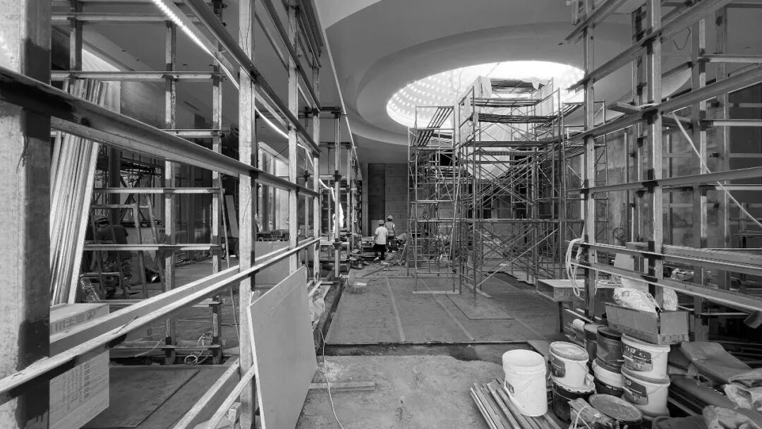 抬头看穹顶圆洞,自然天光洒向室内,同时也能映衬出这棵树的光影之姿,以小见大。