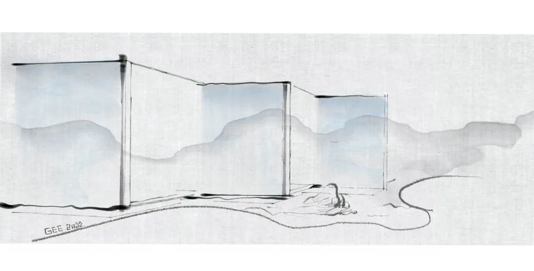 本案在整体的意境呈现上希望打破空间桎梏与边界,大胆采用代表现代东方美学的“渲染”手法,更有一些巧思蕴含在建筑材质与细节之中:古典山水画的色系搭配考究,建筑中的材质犹如颜料,大面积饱和度低的颜色打底,重点局部浓墨重彩。