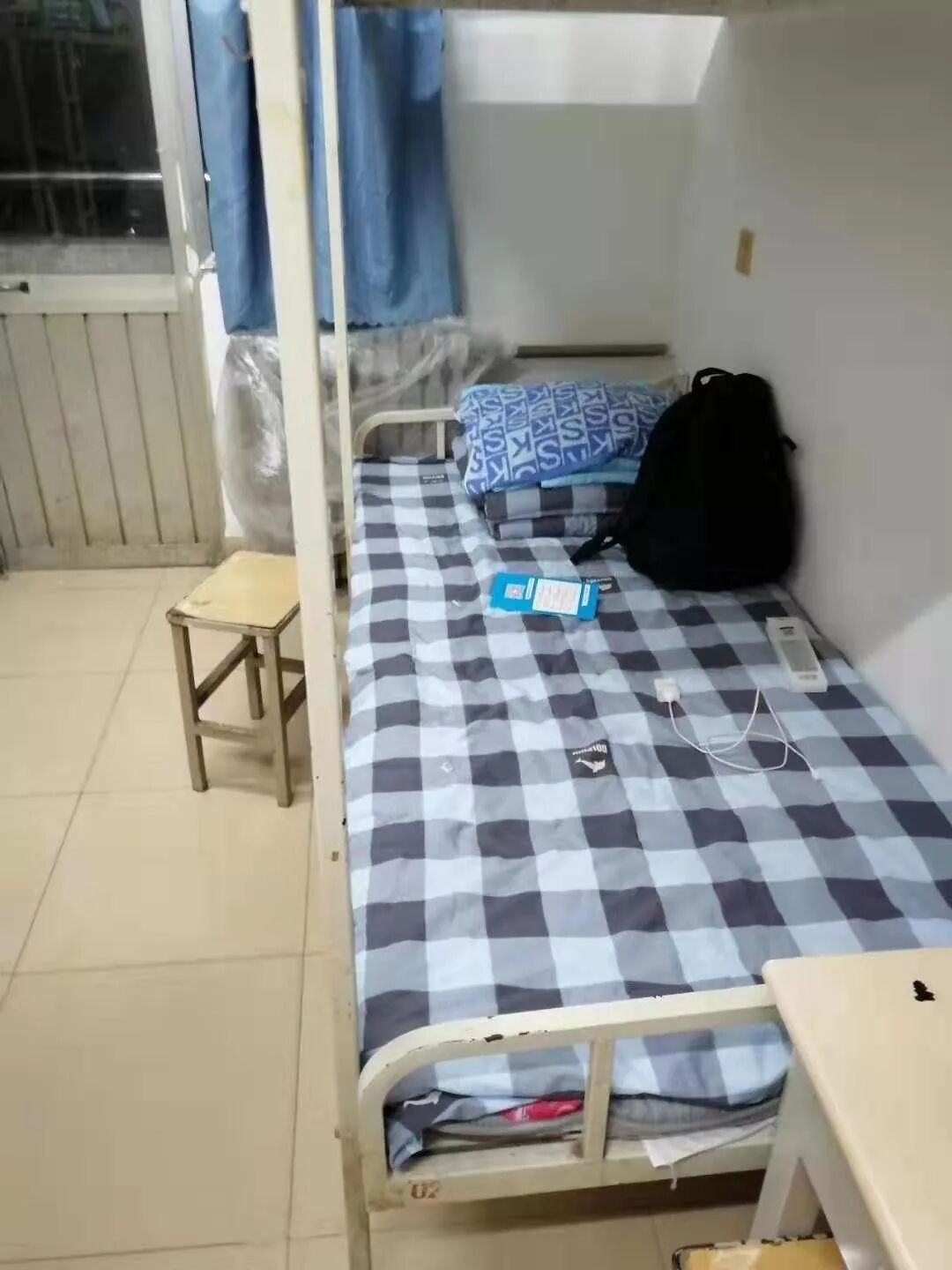 孩子属于建筑工程系,走上三楼顺着学校的提示我们寻到了报到处,将录取通知书,准考证一些必要证件交给报到处后,心里的石头终于落地。接下来就是寻找孩子的宿舍了,没开学之前学校已经提前分好了公寓宿舍,在一番打听后终于找到属于建筑工程学院的21号公寓,宿舍在二楼,一楼的宿管老师热情的接待了我们,这个宿舍是六人间,学校已经为每人都配备了一把钥匙,领过钥匙一行人从车上卸下行李被褥朝楼上走去,打开宿舍一个六人小间展现在我们面前,恩,环境还是不错的,宿舍里有单独的卫生间,按照学校的分配找到儿子的床,儿子分的是下铺,将床铺打扫干净铺上我们带来的被褥后,妻子才满意的笑了,床上的被褥都是她亲自购置,每一件里面都有一个母亲浓浓的爱啊!