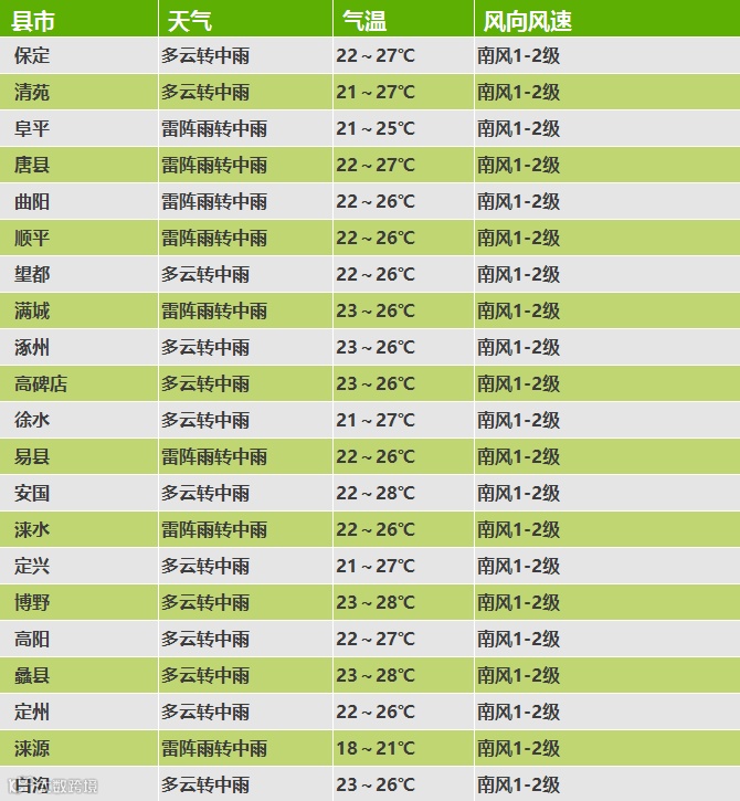 各县市未来24小时天气
