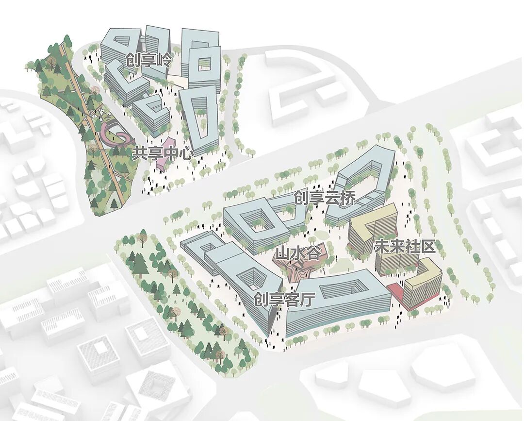 我们希望基于本案独特及标志性的建筑轮廓,构建集产业,人文,自然为一体的现代化产业园区,在绿色多元的建筑空间中,塑造面向世界,面向未来,面向现代化的多元城市节点。