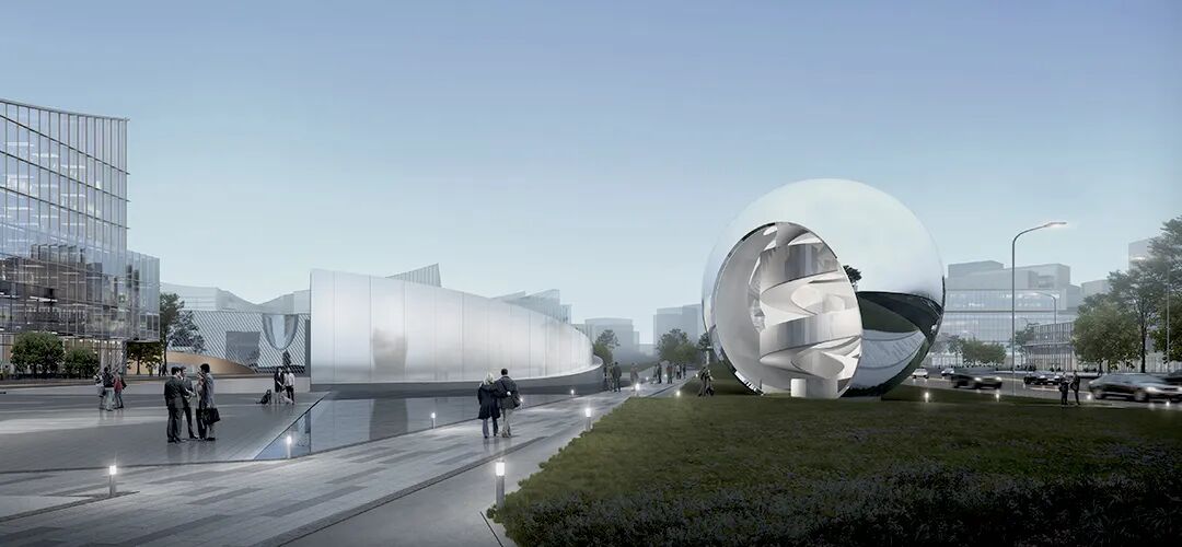 西侧科创主题公园以日新月异为设计主题,强调一种纯净亦富有张力感的现代秩序感,在宜人的生态环境中,为在此工作的人们提供室外休憩及游览的场所,并向来访游客展示东部新区日新月异的变化与发展。