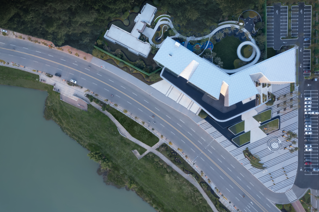 本案所处的场地两侧临道路,形状极不规则,面对这样的挑战,我们以建筑与景观设计的相辅相成,成就了整体的一致性,确保了游览的体验感。