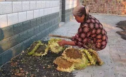 暑假,我去找倩玩儿,家里大门紧闭。我给倩打电话才知道她们一家人,每人带着一把镰刀,天刚蒙蒙亮就去地里削向日葵了。我等她回家后,也学着他们的样子拿起了一根木棍,敲打削下来的花盘,直至把花盘上的葵花籽全部敲下来为止。刚敲了十来个,我的手已经被震得生疼,再看倩,微笑着拿着木棍敲打着一个又一个花盘,还不时地拿起一个瓜子放在嘴里细细品尝。倩说,现在拿木棍这样敲打一天,到晚上双手总是疼的睡不着觉。啥时候发明出一个像“玉米脱粒机”一样,专门给向日葵“脱粒”的机器,就不用这么累了。