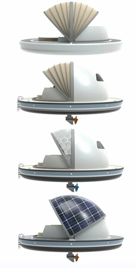 更重要的是,由于这些套房是 100% 太阳能供电的,它们能够自行生产空调、照明、冰箱推进器和其他电器所需的所有能源。同时,船体中的可用存储空间可以提供定位额外电源和系统的可能性。套房可配备陀螺仪稳定系统或燃料电池氢气发生器,以便在船上产生能量,即使在雨天也能确保功能。