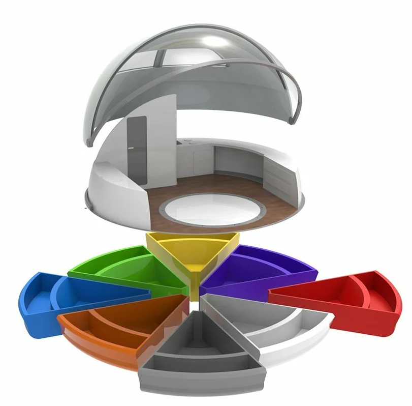 皮尔保罗-拉扎里尼不断扩大他的创新水船概念系列,推出了Pearlsuite,一个旨在彻底改变海滨接待市场的漂浮装置。直径7米的Pearlsuite提供了高达22平方米的内部空间,以及一个可行走的外部甲板。这个概念针对的是现有和未来的海滩度假村,为他们提供了在几周内扩大房间数量的机会,零碳足迹,零基础设施,而且实施成本非常低。