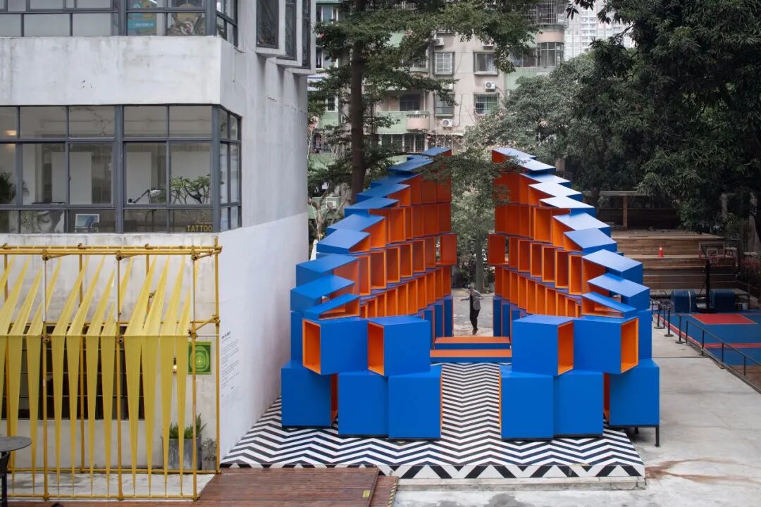 广州这座大都市有着不断叠加和成长的属性,在这一漫长的过程中充满着无限的想象力和集合记忆,Patch-City系列项目的概念正是来源于这个属性,这个人造物体有着看似不断被叠加的结构或者说这个物体不断被“patch(打补丁)”向着远方不断延伸,对于旧建筑遗址来讲,它是一种“演化”。Patch-City Pavilion将来也会被逐渐拆除,并且将会在回收后变为家具走进人们家中或者以另外的形式出现在有需要的环境中。