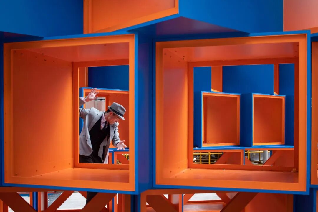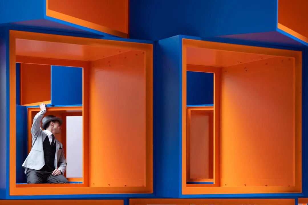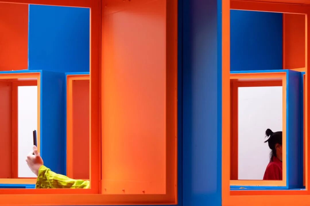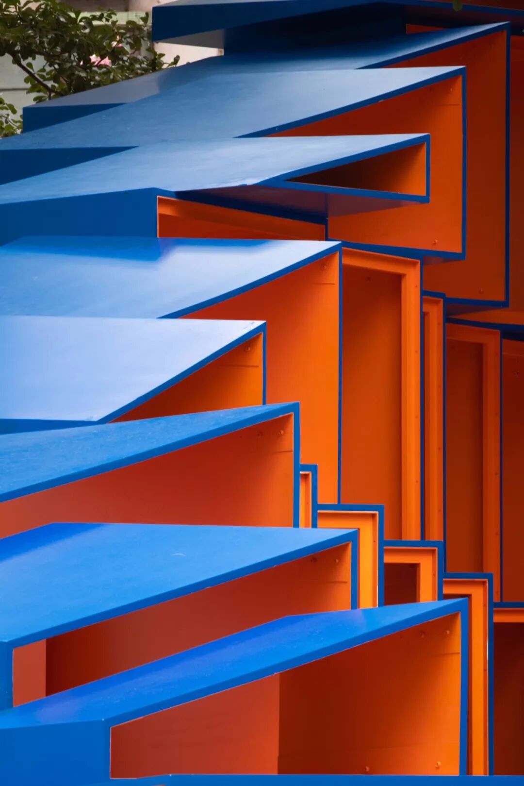 诺亿设计研发创始人王左千形容到:“这是一个非常有趣的搭积木过程,当吊车师傅挑起积木模块,我们在现场还可以进行即兴的调整,我们要建立的不是一个单一场景,而是建立一种立体的互动关系,这样才能让周围发生的故事更加生动,更有叙事性,构成了一幕一幕生动的画面,98个盒子就是承载了98个故事,这就出现了丰富的人物关系和剧场感。”整个Pavilion是由98个预制模块组成的,主材料只有两种,使用雪佛板和最少量的钢结构组成,可以灵活进行打配和组合。材料本身具有很强的耐候性,满足长期在室外使用的需求,重量非常轻,无需重型机械安装,只需要少量技术工人和一架轻型吊机就可以在24小时内组装完成。