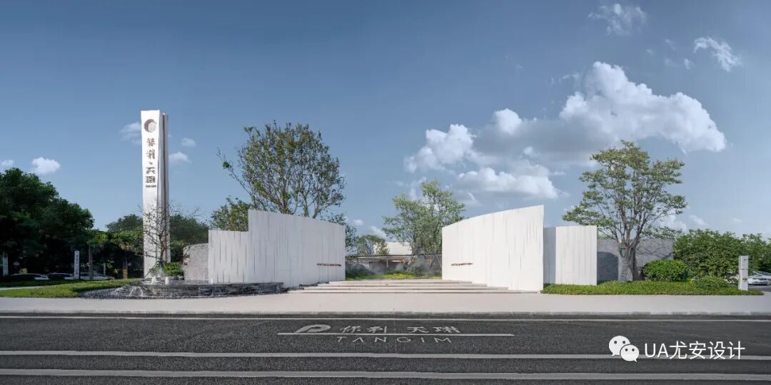 同时,设计在极简玻璃盒子的基础上,增加仿石材的使用,强调水平感,平衡玻璃给人带来的不稳定性。建筑立面由高透玻璃与米白色水泥浇筑板构成,勾勒出建筑体量,通过虚实,展现建筑之美。其中,泥客石作为一种创新型仿石材,是具有天然石材肌理的水泥浇筑板,表面质感强烈、纹理独特,符合现代风格建筑的特点。材料尺寸最大做到1200×2400mm,板材尺寸大,立面材料缝隙少,易达到纯净极致的效果。