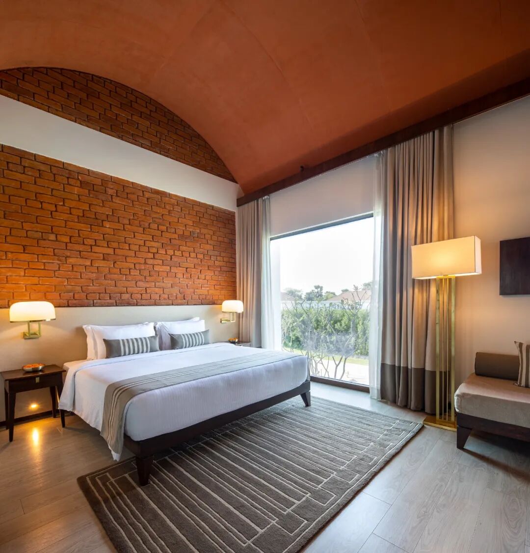 There are two distinct and unique architectural lyrics at play in the hotel design. One is of Memory – where one tunes into the historical roots of Buddhist architecture rich with brick details… vaults, corbeled arches, and stepped jambs all developed in a contemporary idiom to represent the now. The other architectural lyric is Emotion - inspired by the Buddhist ethos of simplicity, compassion, and serenity. These emotions are reflected through structure and choice of material. The architecture unfolds magically through a series of layers creating gentle transitions from outside to inside through verandahs and framed openings. The banyan tree is viewed from the entrance through several frames and a serene courtyard that forms the emotional and physical heart of the project.