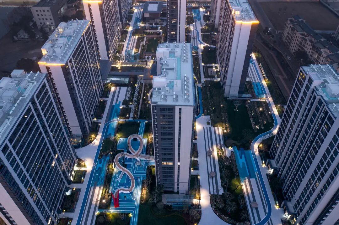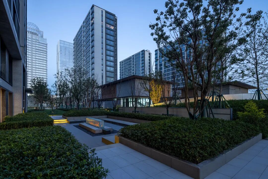 江南的生活,与淅沥的烟雨是分不开的,艺术地形的草坪,拟若流动的碧波,苍翠云烟下弥漫出一抹柔婉的自然深情。雨中绿荫,“飞虹桥”穿行而过,正是雨岸烟汀好景时。行走其中,草木为伴,清风为友,生活的雅逸与余闲,在这片翠色洇开的江南里。