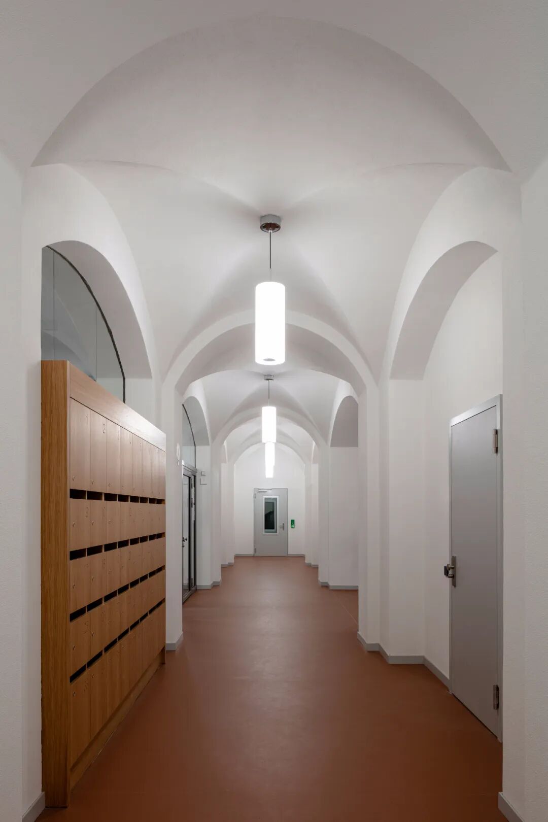 T形的整体结构与庭院的情况相得益彰。立体感通过六层结构的惊人高度影响城市分界,并在明显较高的地方法院和四层住宅楼之间进行调解。与新建筑形成对比的是具有里程碑意义的现有建筑。它们在功能上与新建筑的发展有关。建筑物本身的基本结构得到了维护。它们仅在某些区域进行了翻新和改造。