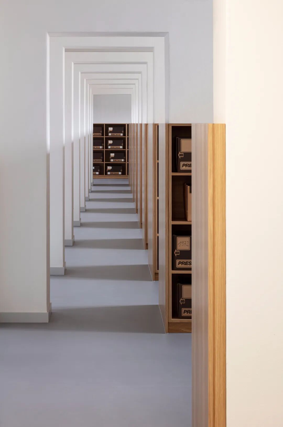 A special feature in the Arndtstraße section of the building was the former detention cells with the impressive staircase system,.The evidence and library rooms were located there. The individual cells were given connecting doors in the partition walls.