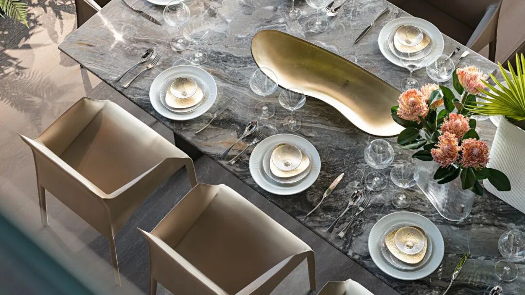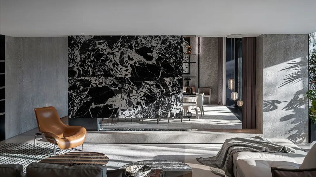自然奢享,艺术奢享,成就了整个别墅的自由精神,纯粹而动人的情绪感染力不断蔓延。大理石的自然肌理,静静铺展开时间的诗意,生活化的场景变得具象了。动静对比、巧拙映衬,一种微妙的艺术平衡悄然发生。