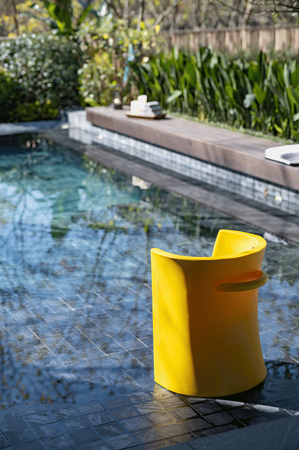意大利品牌的B&B长椅与湖畔曲线遥相呼应,比利时艺术家Vrielinck.Ann的雕塑装置《摘星》将艺术放归自然之境,明黄与古铜、现代与古典两相对比,形成一种完美对视的角度,让艺术意境得以最大舒展,生活意味无限延长。