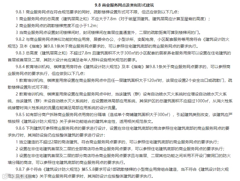 《浙江省消防指南》第9.8条:尚对商业服务网点进行了更多的补充: