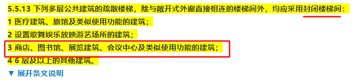 商业服务网点楼梯为开敞式,而如果是普通商店,依据《建筑防火规范》第5.5.13-3条,则楼梯间必须为封闭楼梯间。