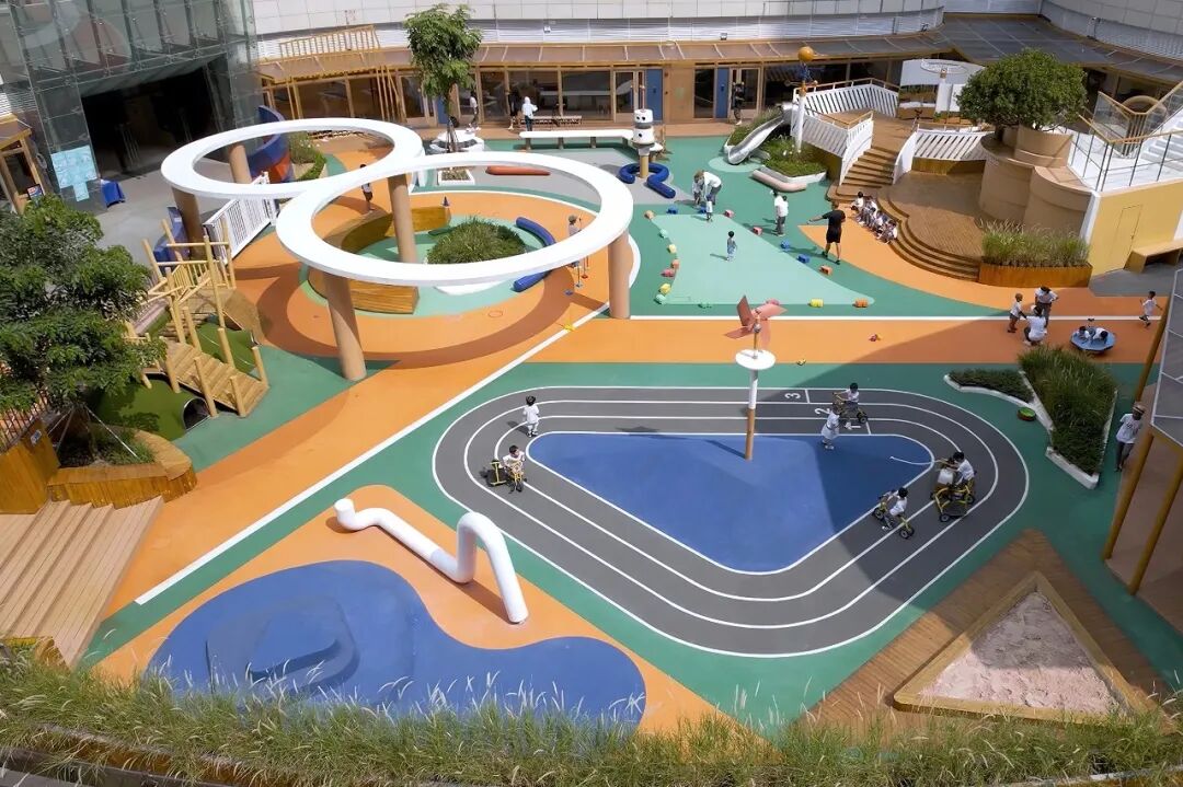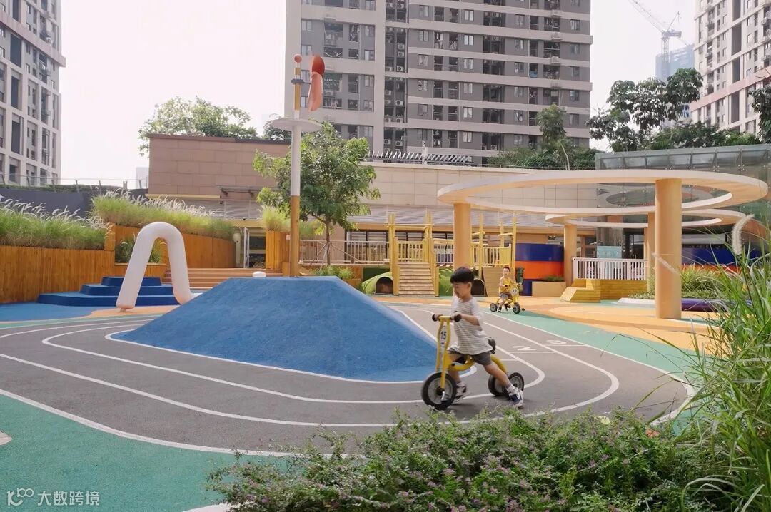 比如当一群孩子决定来一场精彩的运动比赛,整个场地的都可以是他们奔跑和游戏的地方,所以在户外不同的区域功能的基础上,都充分考虑了运动的方式和安全性。
