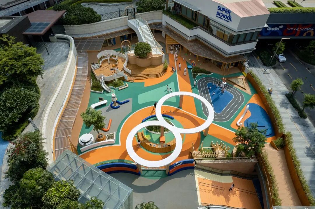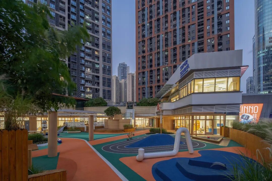 VMDPE圆道设计受委托的IBOBI SUPER SCHOOL幼儿园项目位于深圳科技领域的中心区大冲。作为大湾区区域发展核心引擎之一的深圳,大冲是深圳高科技人材和企业的聚集地,也是象征着深圳繁荣年轻的地方。在这片高人口密度、高建筑密度、高容积率地区拥有一个可达性高的优秀幼儿园,是周边工作繁忙家庭的需求和期待。