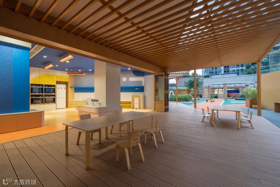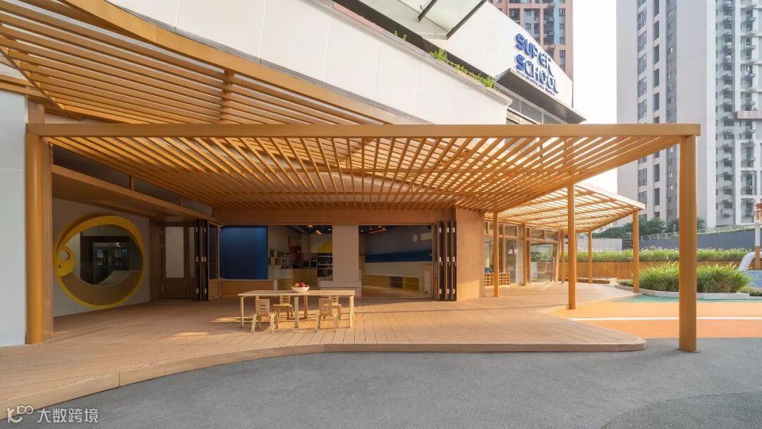在课室的规划上模糊了内外的界限,为了方便室内与室外的衔接,室内外交接处被打造成了连廊的形式,便于人们在不同天气条件下畅通无阻进出其他空间。将连廊的部分抬高,使其与课室地面平整衔接,形成了一个易于进出的平台。