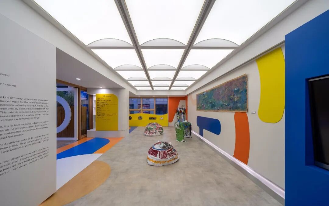 比如在场地的一侧,我们特地设计了一个“小小美术馆”。用于展示校园内不断出现的精彩内容,让孩子们感受到自己的作品被尊重的感觉,也方便了家校之间的联系。