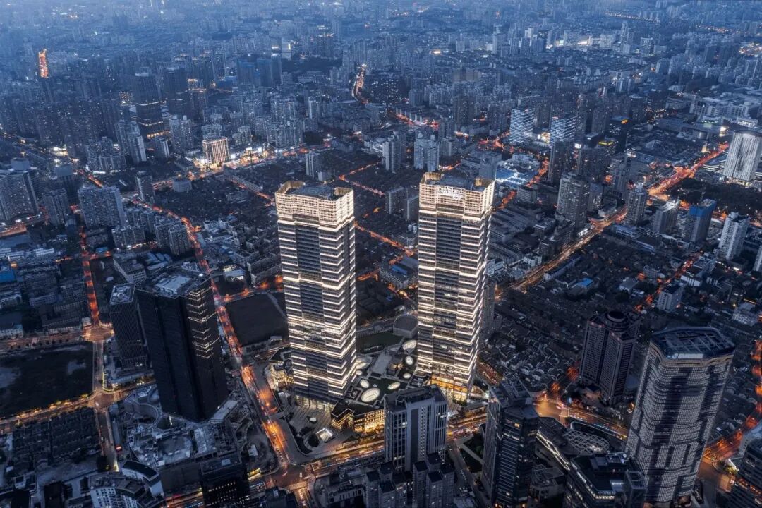 项目由标志性的双塔以及商业裙楼组成,总建筑面积约42万平方米,双塔高263米,为迄今为止上海已建成的很高双子塔。塔楼造型极具标志性,还能将外滩与浦东的优美风景尽收眼底。每座塔楼不仅拥有高档办公空间,还配套有屋顶花园、高级餐饮等一系列现代化设施。