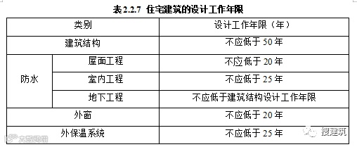 2.2.7 住宅建筑的设计工作年限应符合表2.2.7的规定。