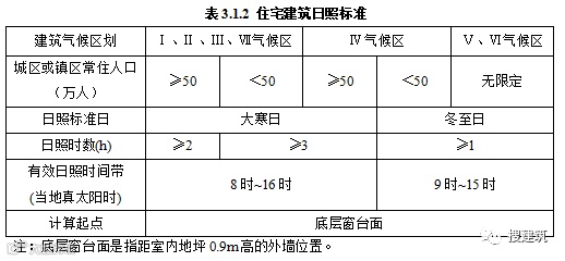 3.1.2 住宅建筑间距应按表3.1.2规定的日照标准进行控制。旧区改建项目内新建住宅建筑日照标准不应低于大寒日日照时数1h。